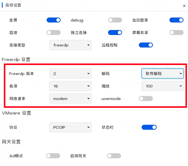| 模式 | RDP | SPICE | VMware Horizon | Sunshine串流 |