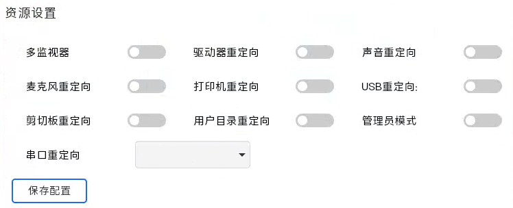 2)在资源设置中关闭不需要的重定向功能,此时瘦客户端将会有一个流畅的体验。