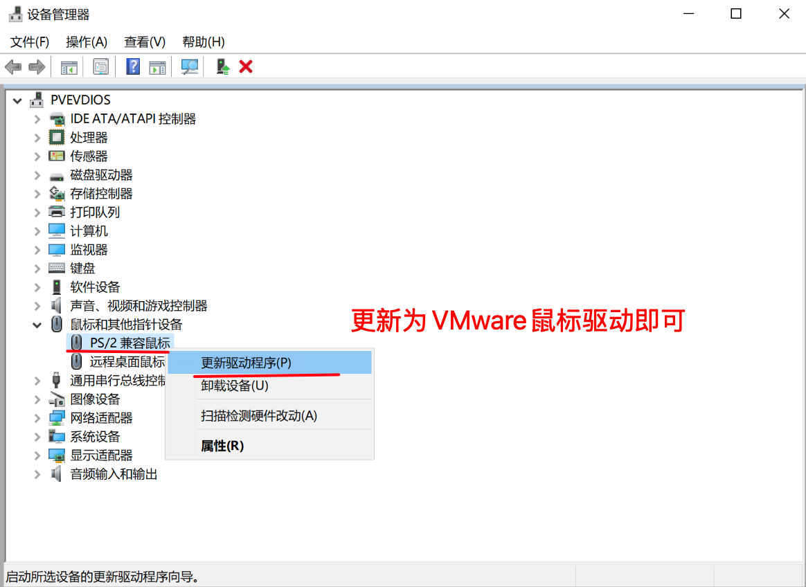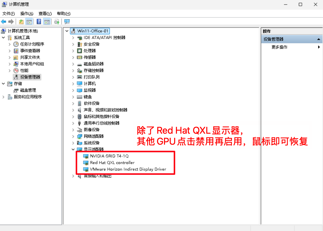 A4:这是因为虚拟机存在多个GPU屏幕,导致Spcie协议的鼠标异常。解决方法也很简单,去设备管理器里把其他的GPU禁用再启用,鼠标就能正常使用了。这里弄了个一键脚本可以放到开机自启文件夹自动运行就不需要每次去点击了