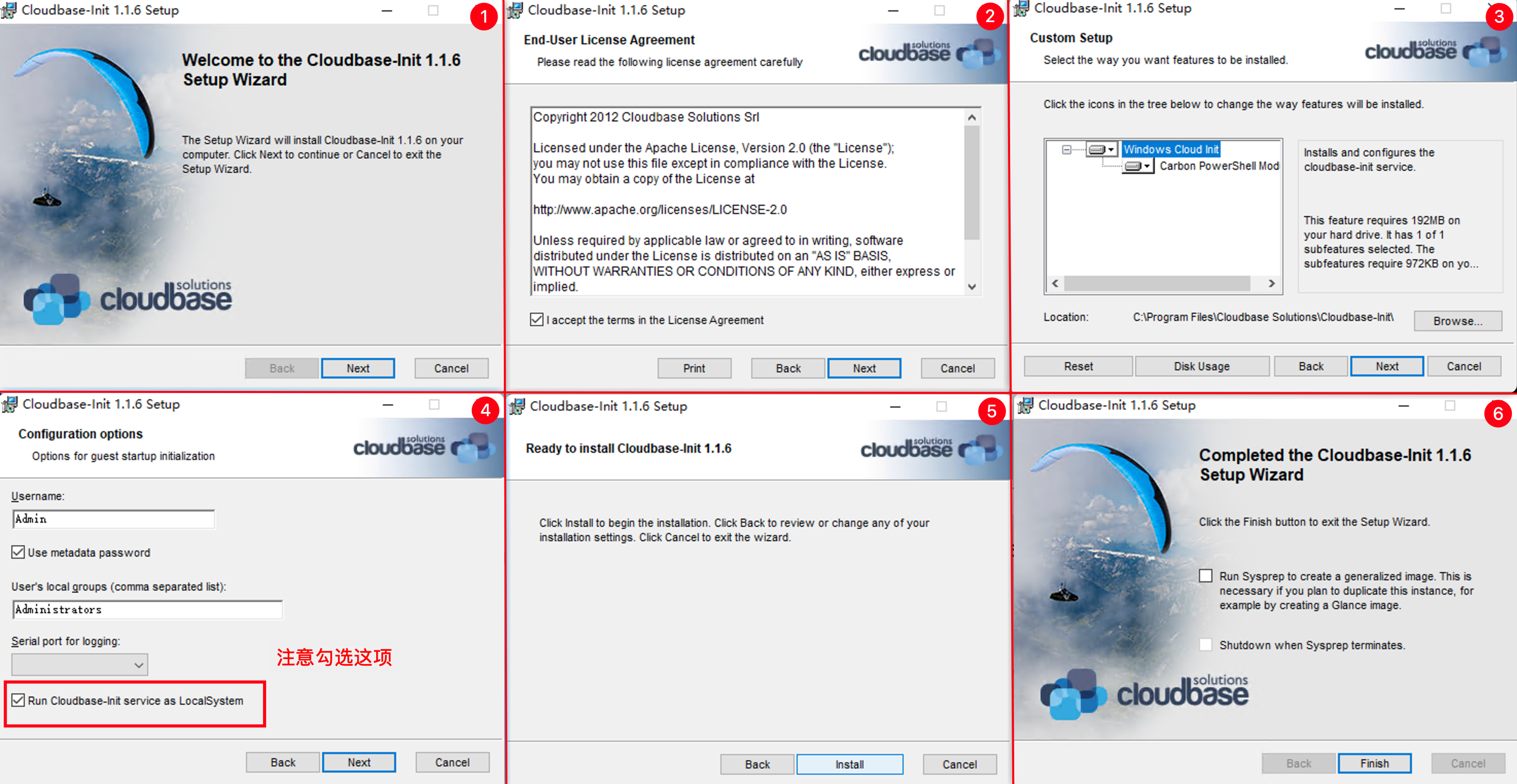 1)将下载好的CloudbaseInitSetup_1_1_6_x64.msi文件进行安装(Win虚拟机为例)