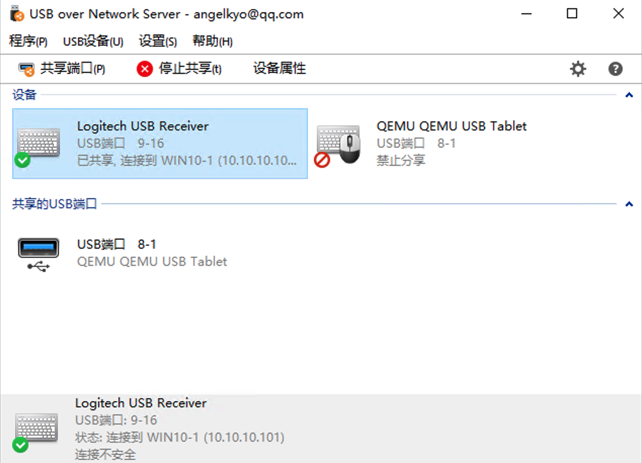 虚拟机也安装个USB设备共享工具(客户端),然后接入主控机服务器IP就能看到共享的鼠标键盘了。点击连接就能正常使用